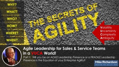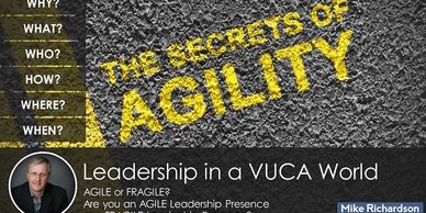 We live in an accelerating VUCA world (Volatility, Uncertainty, Complexity & Ambiguity) for which the only antidote is AGILITY. I ask your audience, "are you AGILE or FRAGILE?" Are you a FRAGILE Leadership Presence (like the majority) or an AGILE Leadership Presence (like a minority) and what does it take to move from the majority to the minority?