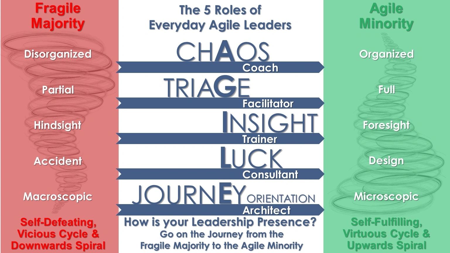 Inside the complexity of agility is the elegant simplicity of 5 attributes of agility to change our relationship with, inviting the 5 Roles for Everyday Agile Leaders (#5REALS) to step up to.